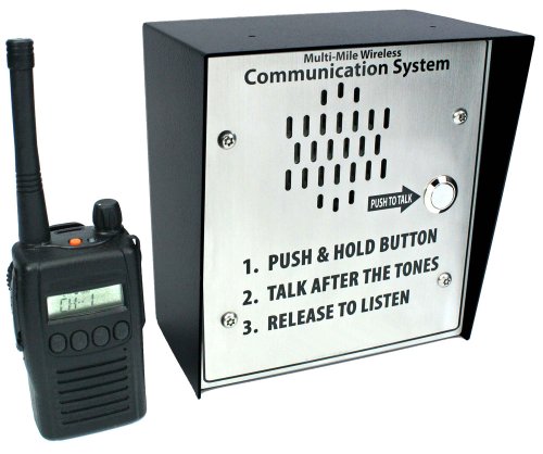 The Multi-Mile Long-Range Wireless Outdoor Intercom callbox is the longest range outdoor wireless intercom available! When you can't run wires to a door or gate but you still need two-way communication with remote door or gate opening, the Multi-Mile Callbox solves the problem.Most wireless intercoms claim to have a range of 500-1000 feet. The problem is that this is a line-of-sight range, meaning you actually have to be able to see between the two points with no obstructions to obtain this maximum range. If you have line of sight in the winter and in the spring leaves on the trees take that away, all of a sudden your intercom doesn't work anymore.With the Multi-Mile Callbox you can reach distances measured in miles depending on conditions.The Multi-Mile Callbox is also vandal resistant so unlike cheap gate intercoms, you won't have to worry about the outdoor unit being destroyed by vandals. It's tough metal housing keeps it safe. Its audio surveillance capability can be used simultaneously with the gate opening ability so you can listen in as a visitor enters.The internal remotely activated switch can be used to activate a door or gate controller, switch on a light, sound an alarm, or for any application where remote control of an on/off switch is needed.Use the Multi-Mile Callbox for security gates, delivery doors, loading docks, golf course order systems, office entry systems, boat docks, parking lot security, construction elevators, truck scales, OSHA compliance, storage facilities, areas of refuge, campgrounds, school playgrounds, etc. With the intercom's long range and variety of power options, how you use it is only limited by your imagination.The Multi-Mile Callbox includes the following components:- 1 RoveTec Outdoor Wireless Intercom- 1 Commercial Grade Two Way Radio with Gate Opening Button and charging unit- 1 Antenna Kit- 1 Torx Bit- 4 Torx Screws- 1 Hole Plug and Seal KitRequires optional AC adapter if not gate powered.